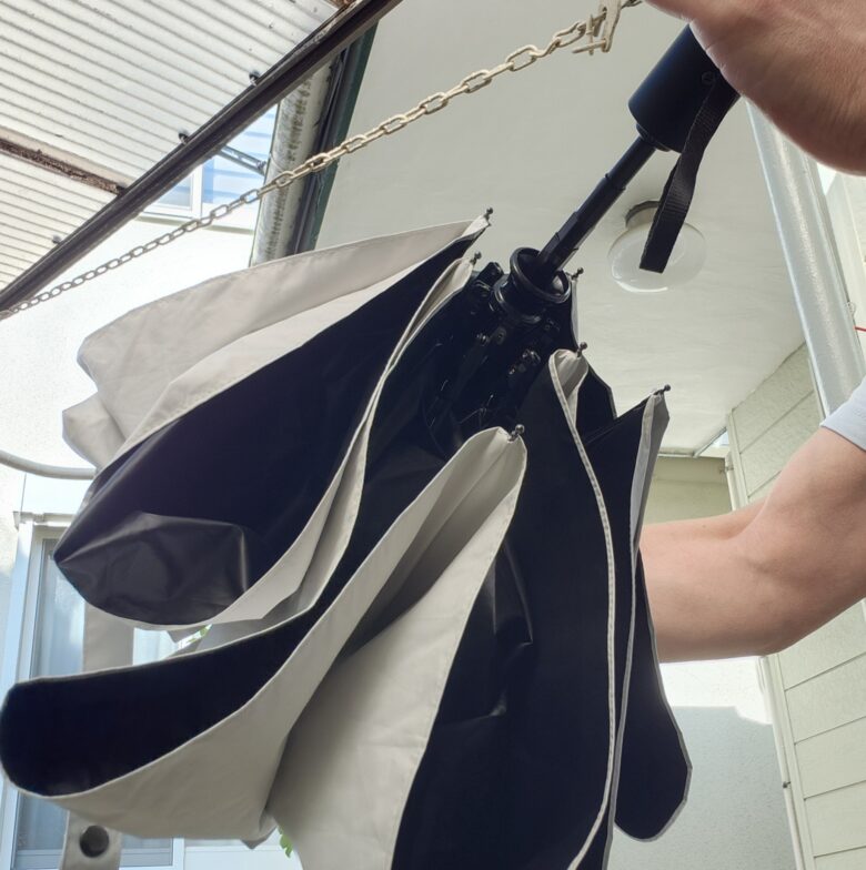 駅や目的地に付いてもワンタッチで傘をたためて超便利!