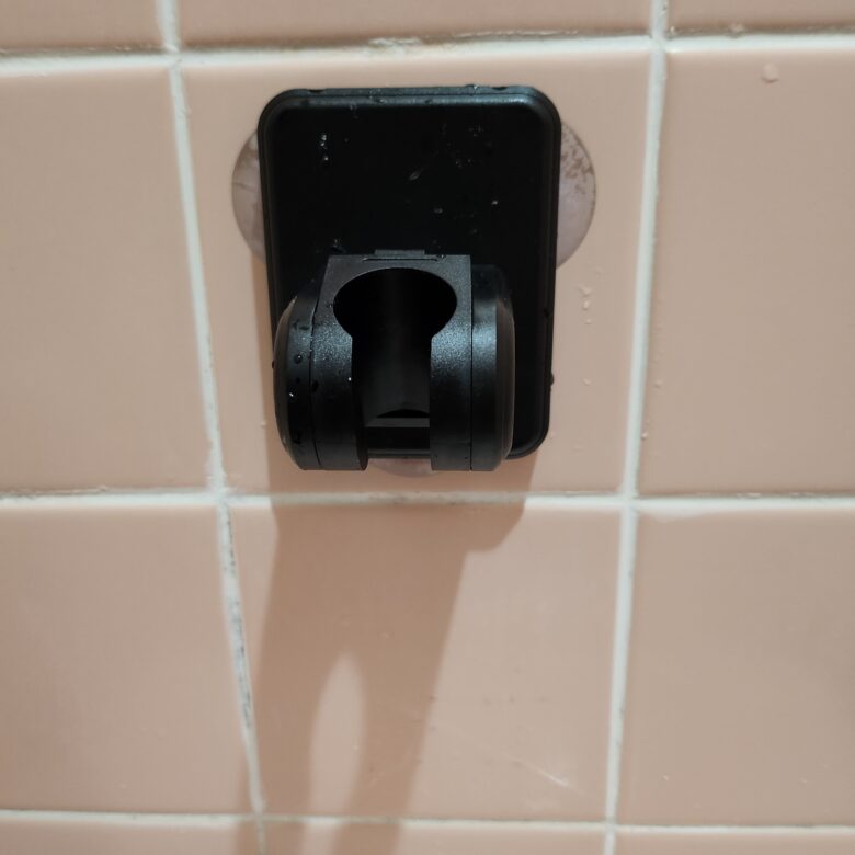 まずは、ホルダーに吸盤を取付て風呂のタイルに取付!