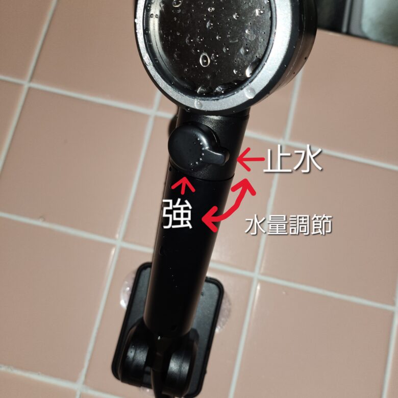 シャワーヘッドの後ろ側でシャワー水流(モード)の選択も出来ますよ!