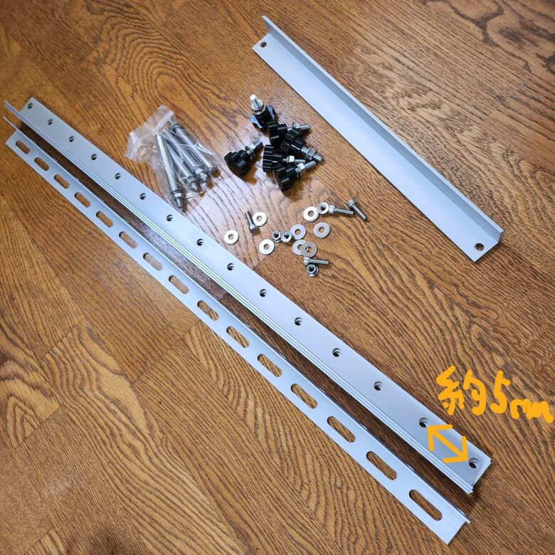 リョクエン ソーラーパネル架台を使ったので架台の穴位置をずらせば5㎝間隔程度でパネルは動かせます!