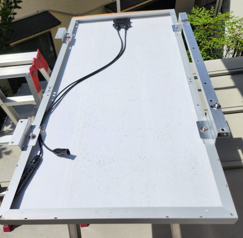 今回もアルインコの脚立を使い、取り外したパネルを仮置き・取付ける時にも乗せてから架台に上げています。