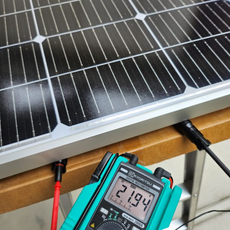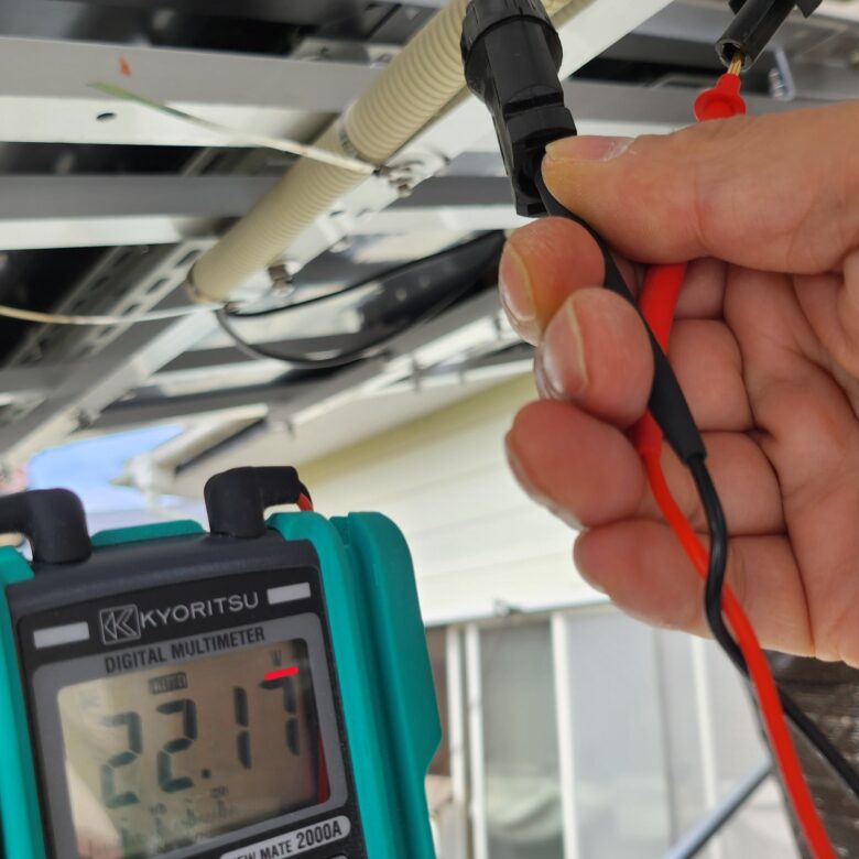 ※パネルはいつも設置前にテストしています。設置後に初期不良などの不具合があると取り外し等の手間がかかる為です