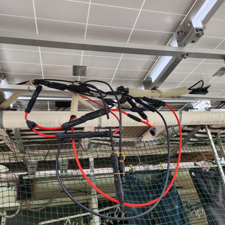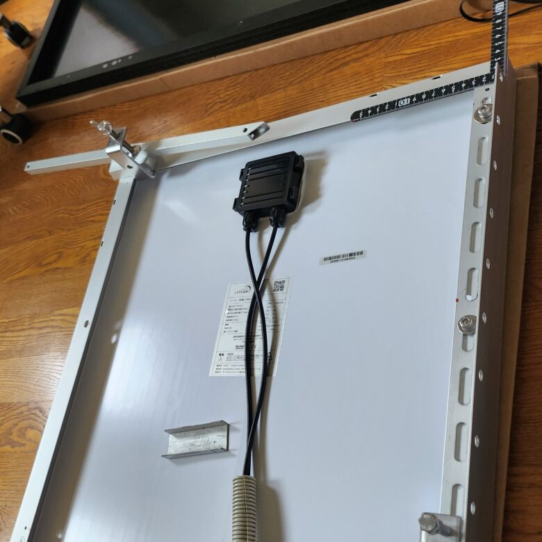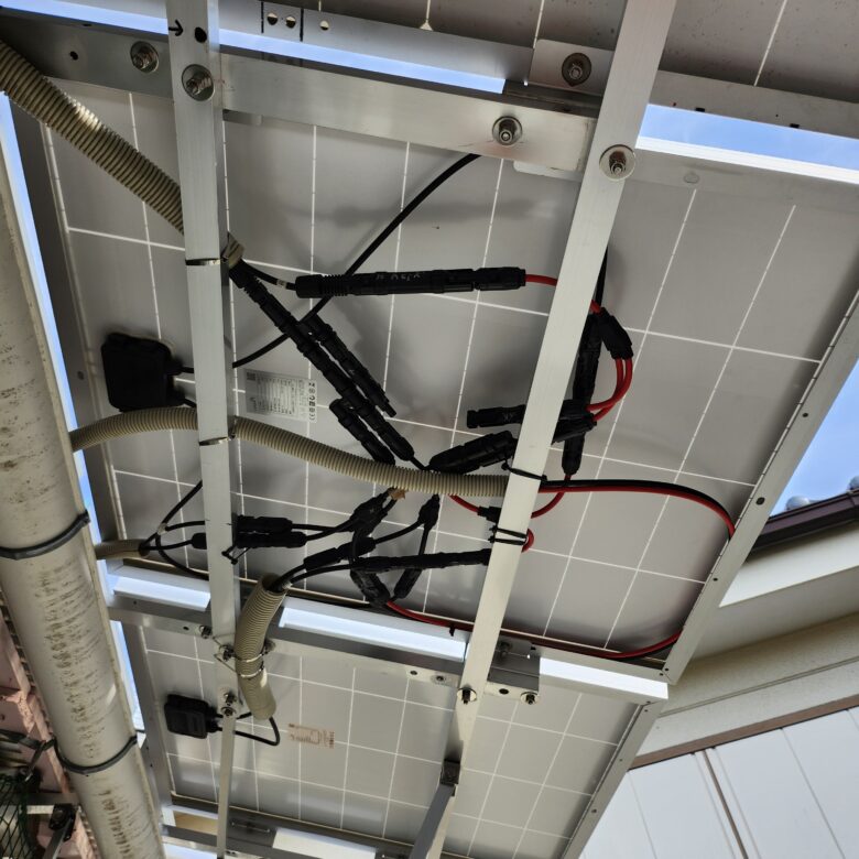 パネルのMC4コネクターを取付、ケーブルをまとめて配線も完了(^o^)/