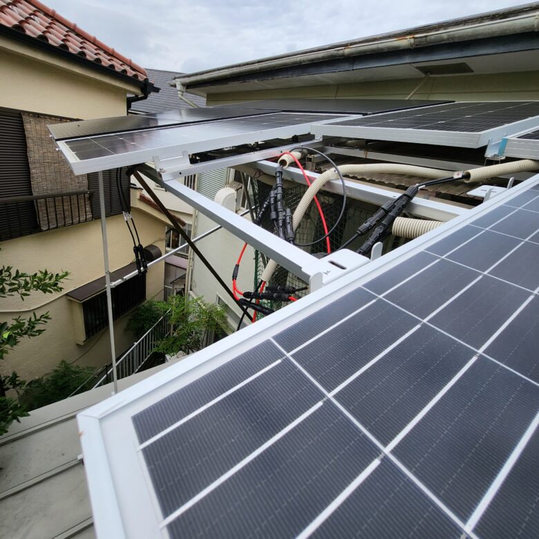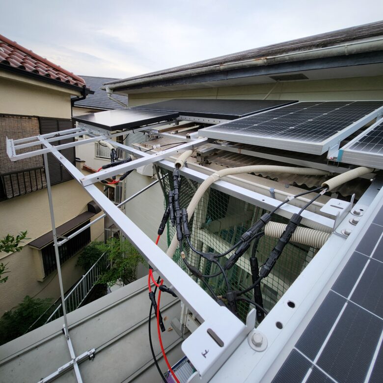 架台は少しコストが掛かりますが、パネルを高い所に乗せてから設置する場合には楽に感じます。