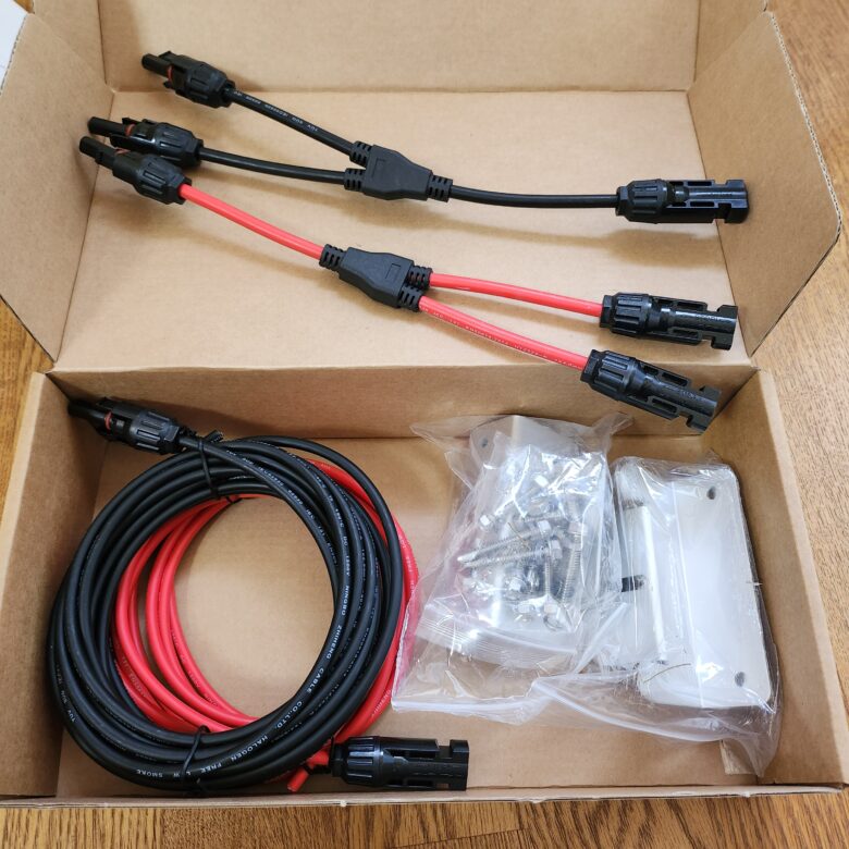 お買い得のセットには並列接続に必要な【Y型コネクター】・パネル取付用の【Zブラケット2セット】・【5mソーラーケーブル(片側MC4コネクター付)】が付属されています。