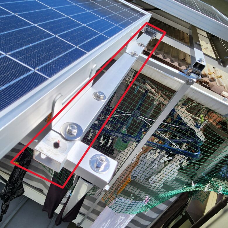 まずは、架台とベランダにクランプを取付てアルミ角パイプで接続して補強!