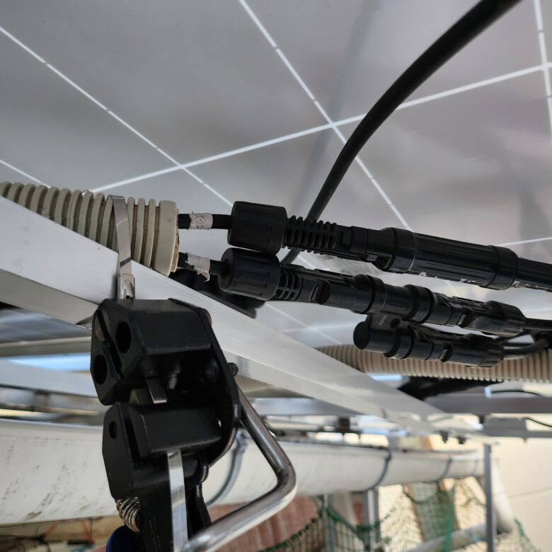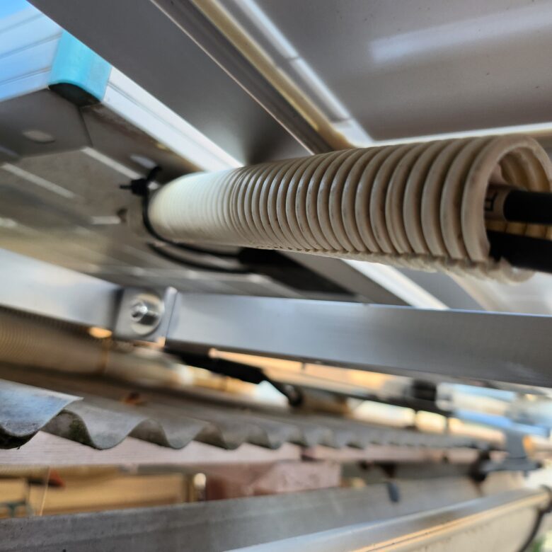 日が当たる部分にはPF管を取付てケーブルを保護!