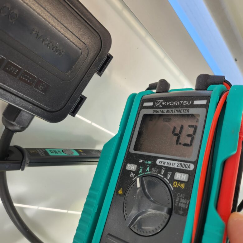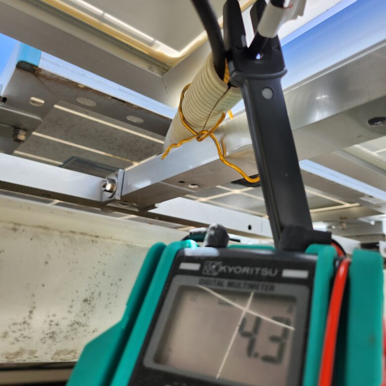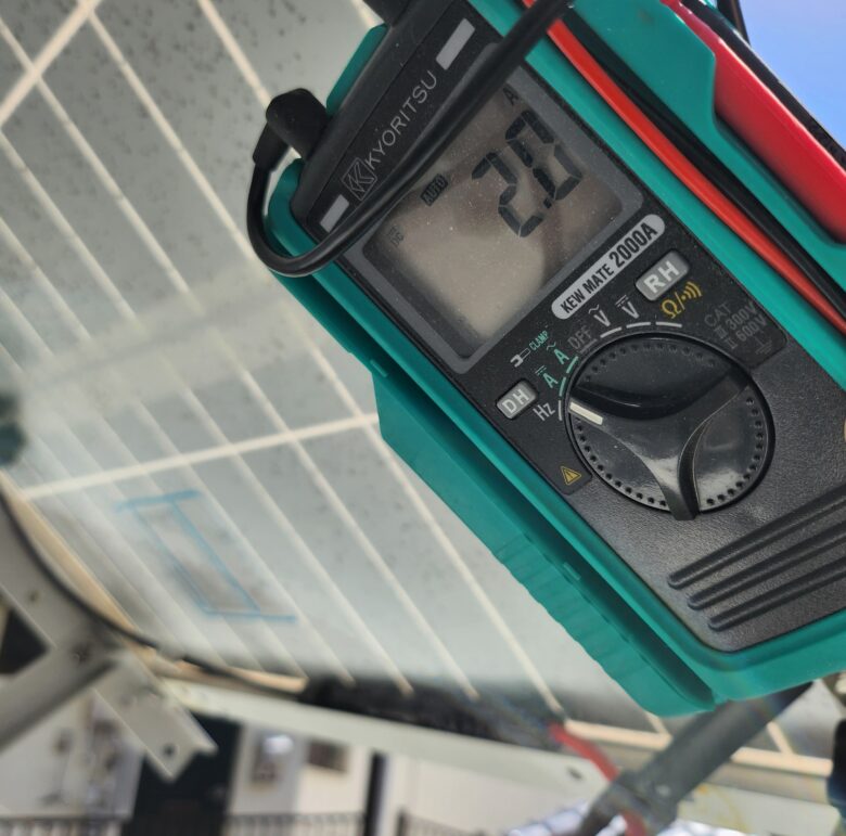 ※パネルはいつも設置前にテストしています。設置後に初期不良などの不具合があると取り外し等の手間がかかる為です