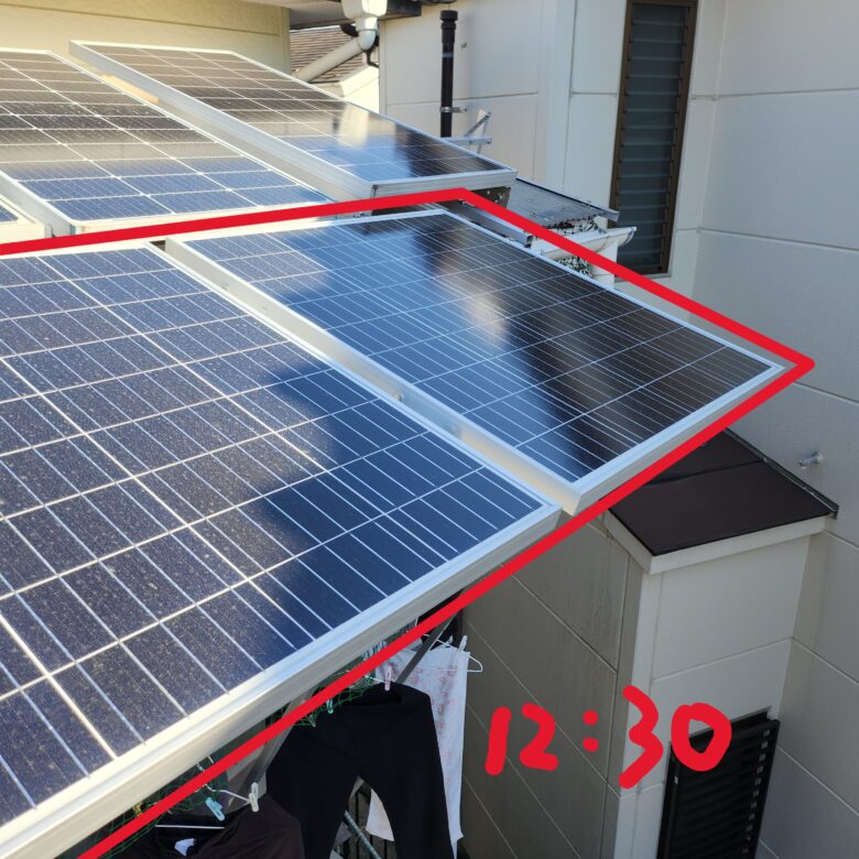 少しだけ影が掛かった【リョクエン LY36M-100Wパネル】の発電量は激減(; ・`д・´)