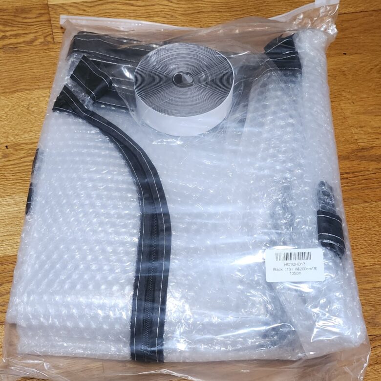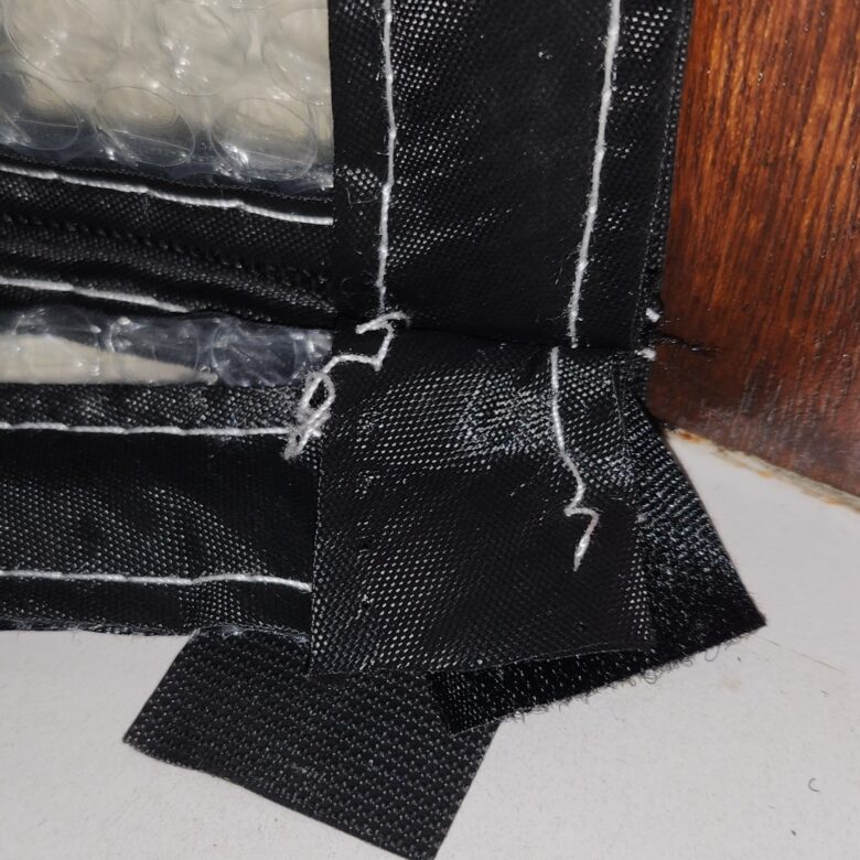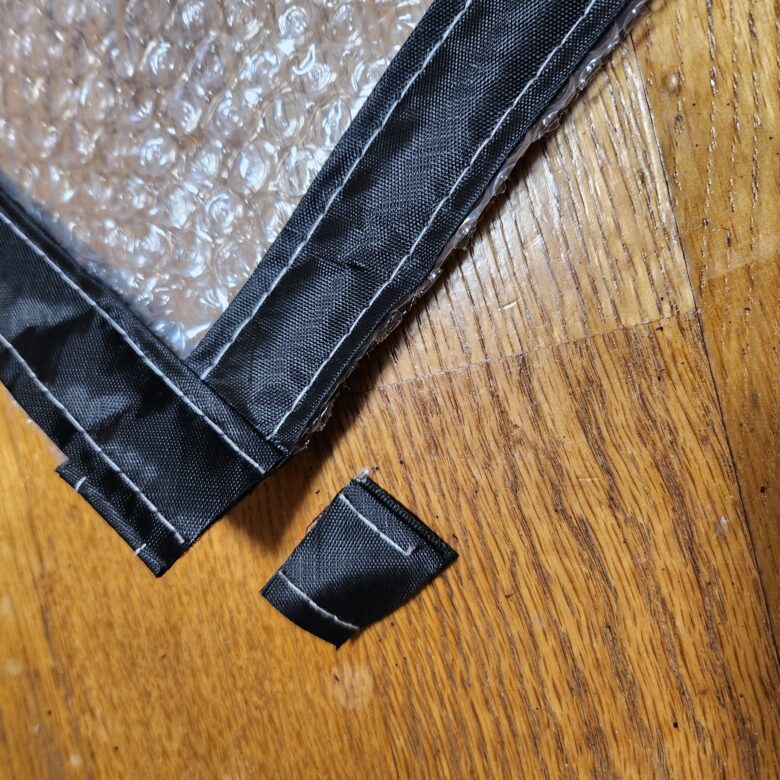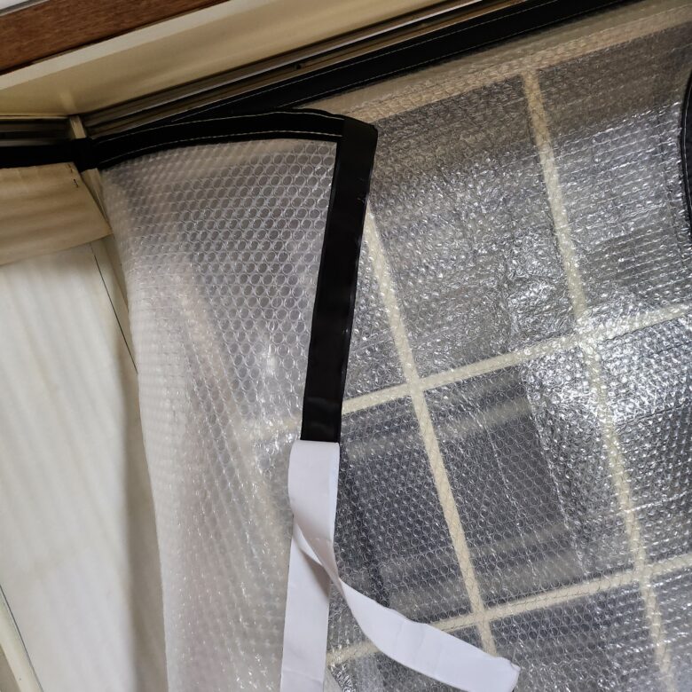 窓枠に貼ったマジックテープに合わせて右側と上面を合わせ取付。